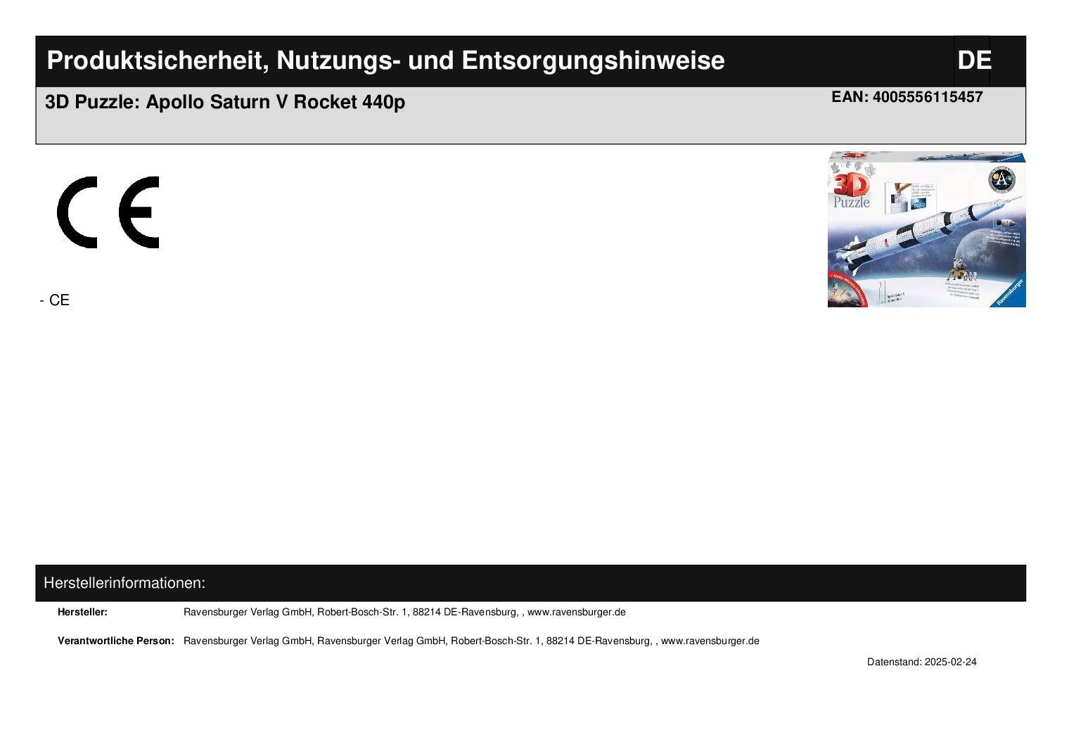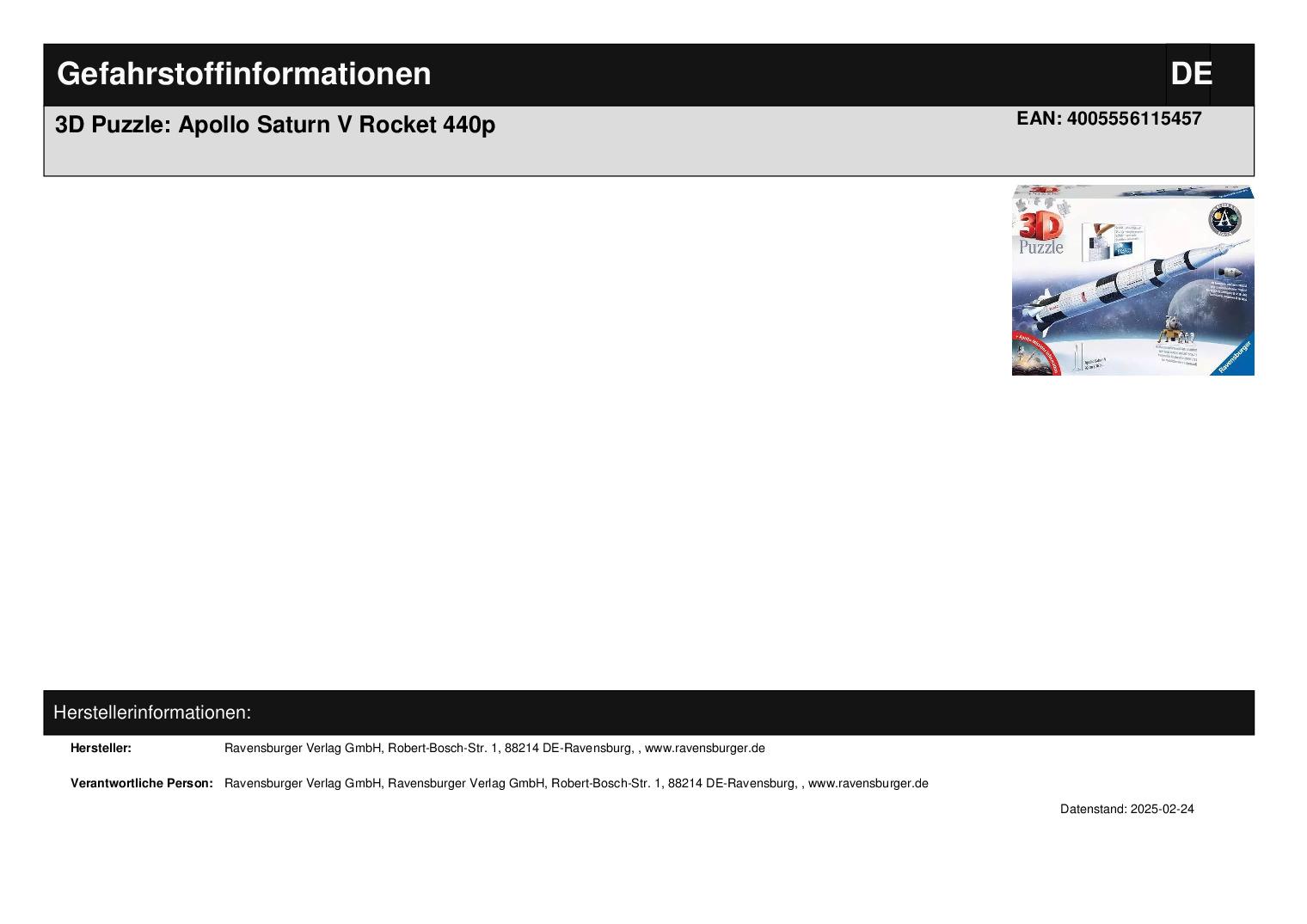 Produktinformationen "3D Puzzle: Apollo Saturn V Rocket 440p"