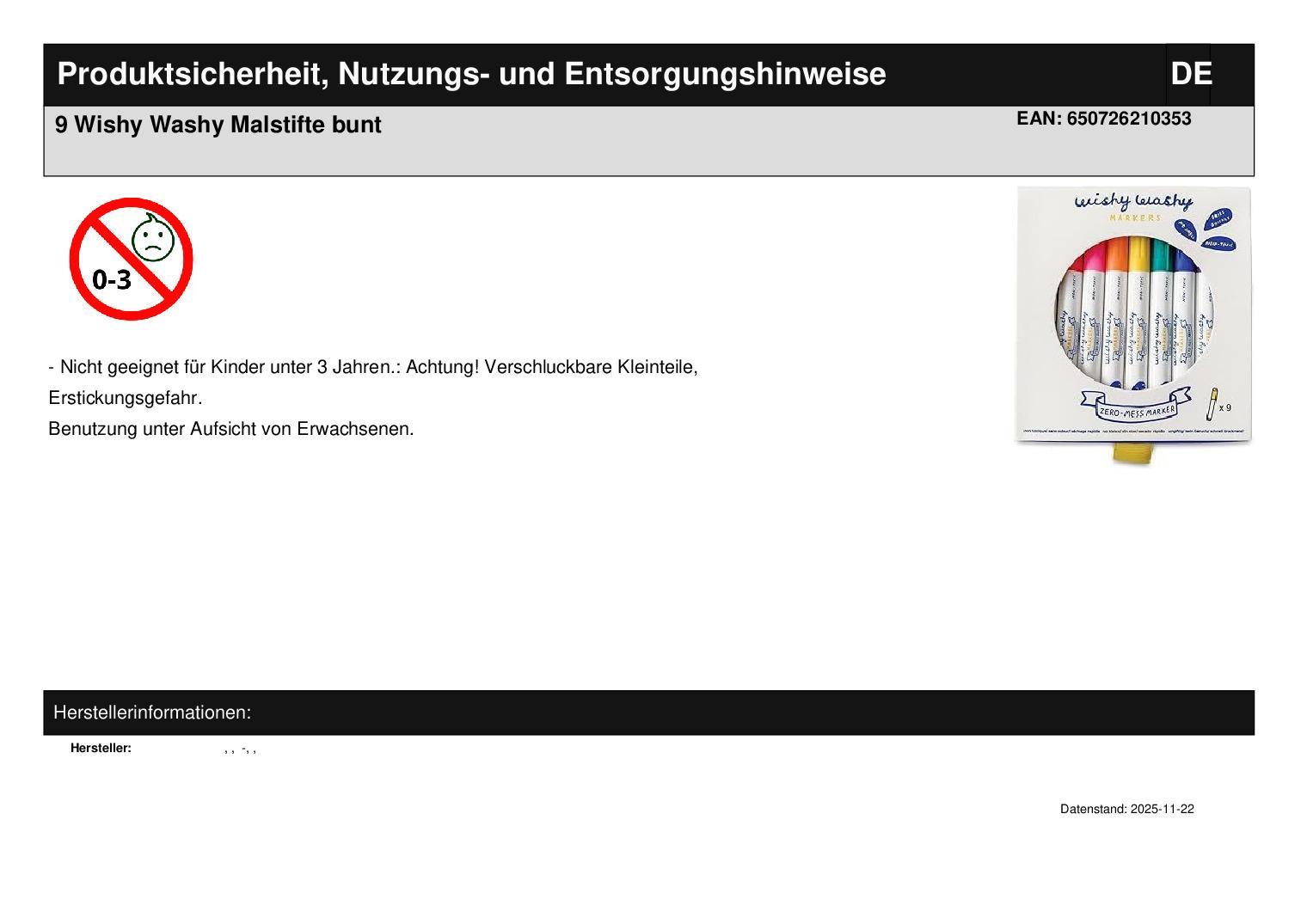 Produktinformationen "9 Wishy Washy Malstifte bunt"