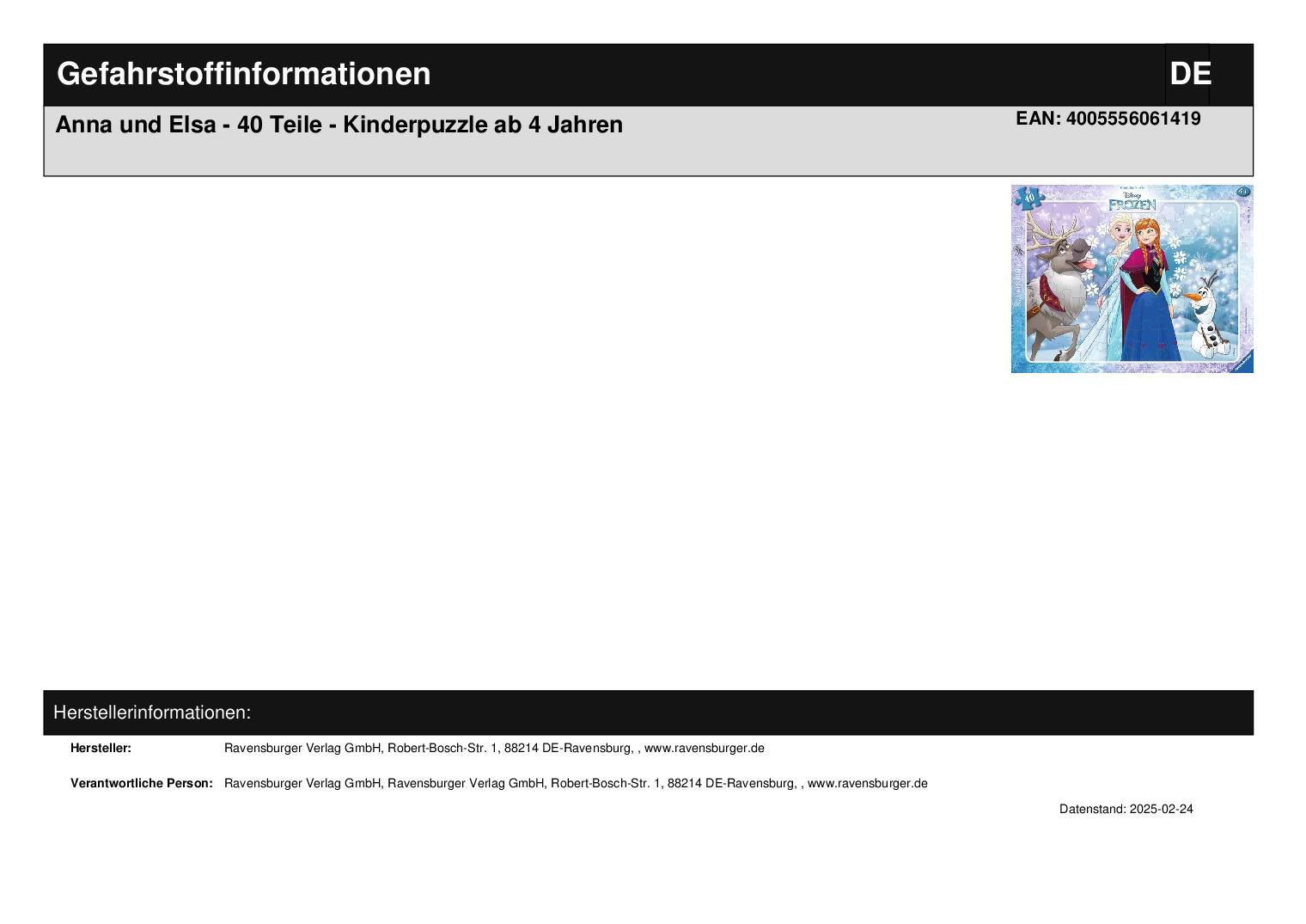 Produktinformationen "Anna und Elsa - 40 Teile - Kinderpuzzle ab 4 Jahren"