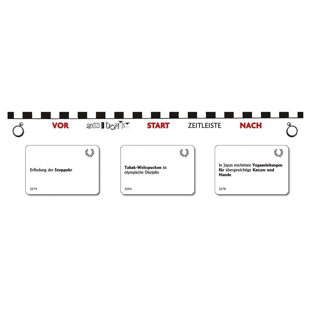 So fügt reihum jeder Spieler der Kette mit den Ereignissen ein neues hinzu, bis ein Mitspieler seine Zweifel äußert und die Kette überprüft wird. Wer falsch lag, bekommt nun Strafkarten vom Stapel, die er ebenfalls wieder loswerden muss. ... und schon wachsen mit der nächsten Ereigniskette die Zweifel der Mitspieler heran. Das einfache Spielprinzip und die kuriosen Ereignisse garantieren einen lange anhaltenden und immer abwechslungsreichen Spielspaß! Die Serien sind nach Themengebieten sortiert, bei den einzelnen Themen ist der Rahmen jedoch weit gesteckt. Natürlich kann jede Serie für sich allein gespielt werden. Das Spiel entfaltet aber einen zusätzlichen Reiz, wenn man die Serien mischt.