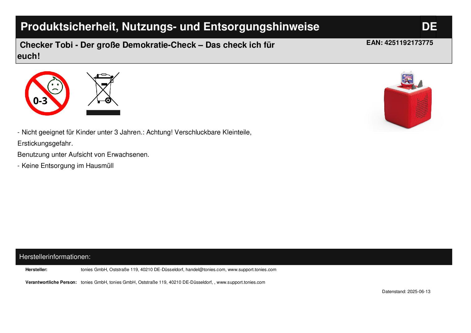 Produktinformationen "Checker Tobi - Der große Demokratie-Check - Das check ich für euch!"
