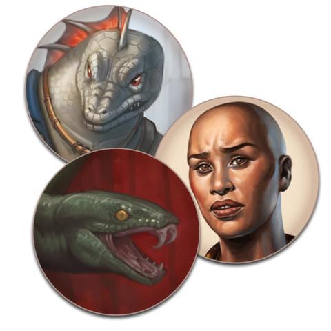 Diese 61 Acrylmarker bieten euch die Möglichkeit, die Kämpfe der Abenteuer aus der Anthologie Vielfarbene Verderbnis für eure Spielgruppe zu visualisieren.