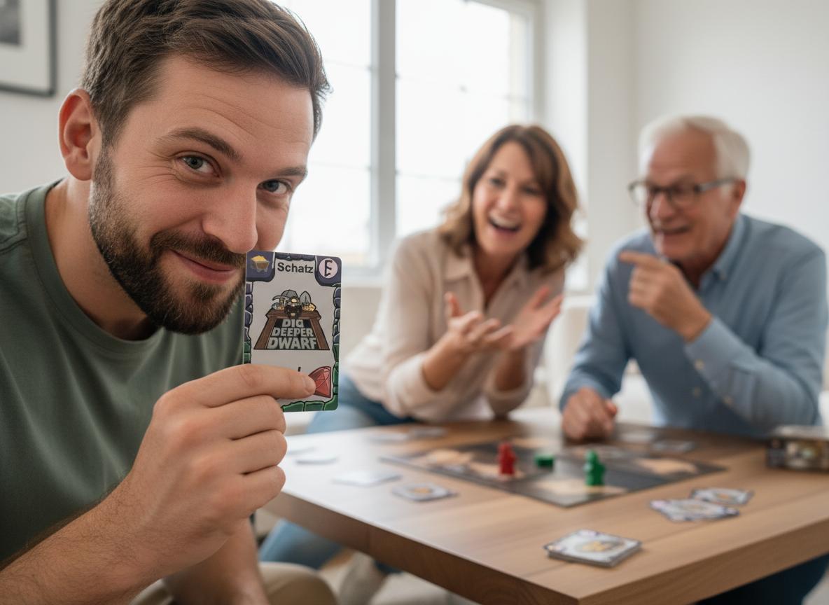 Dig Deeper Dwarf: Grabe, sammle und sabotiere in 45-60 Minuten voller Spannung und Taktik. Ein Kennerspiel mit großem Wiederspielwert. Jede Partie bietet durch Deckbuilding, variable Minenplättchen und interaktive Sabotage neue Herausforderungen. Ideal für Spieler, die Spannung, Taktik und Interaktion suchen.