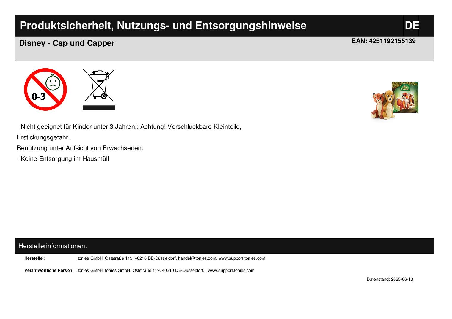 tonies GmbH Oststraße 119 40210 Düsseldorf handel@tonies.com www.support.tonies.com WEEE-Nummer:
