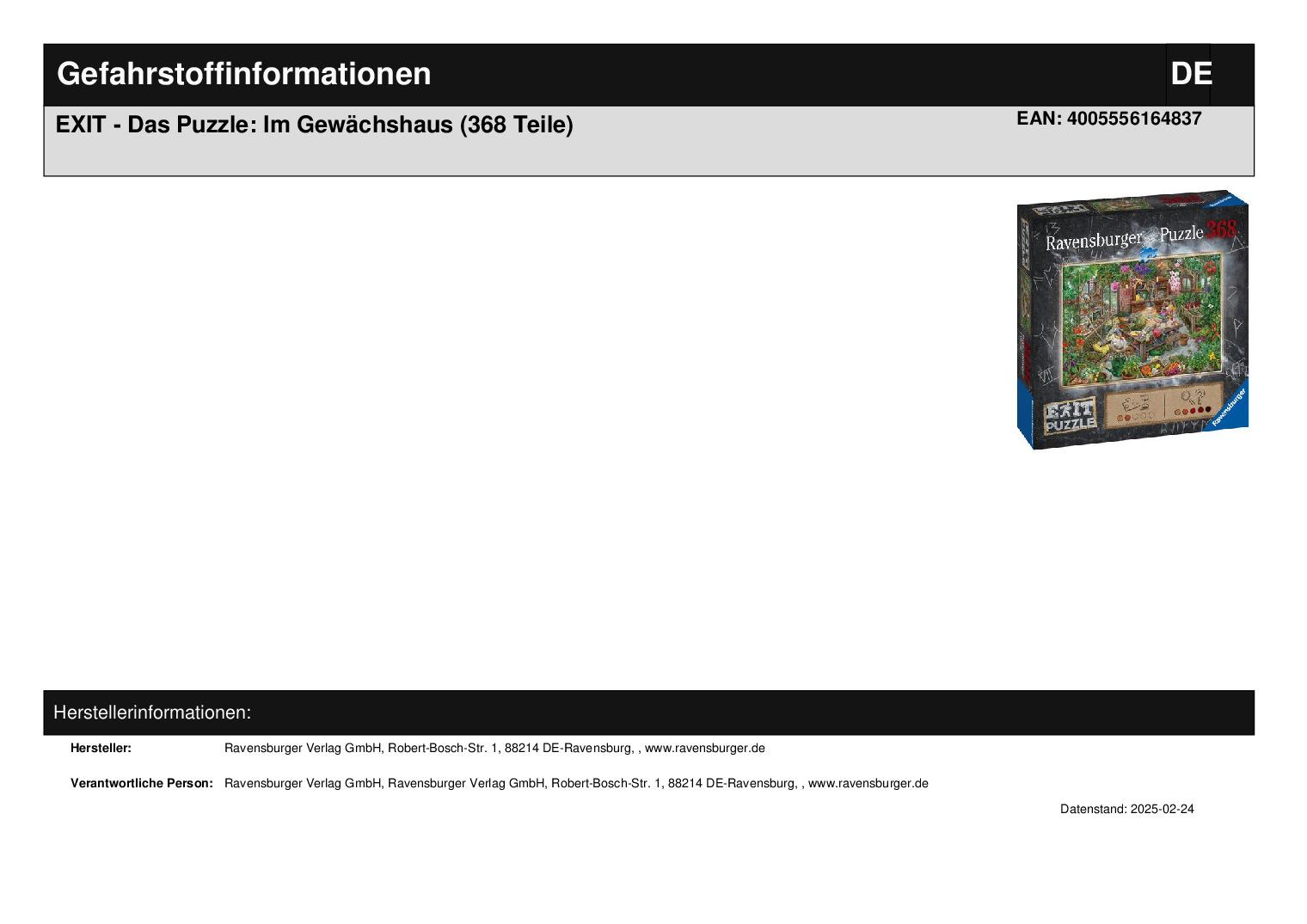 Produktinformationen "EXIT - Das Puzzle: Im Gewächshaus (368 Teile)"