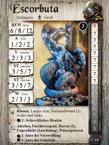 Escorbuta ist eine Söldnerin für die Amazonen, die Imperiale Armada, den Kult, die Piraten und die Schatten.