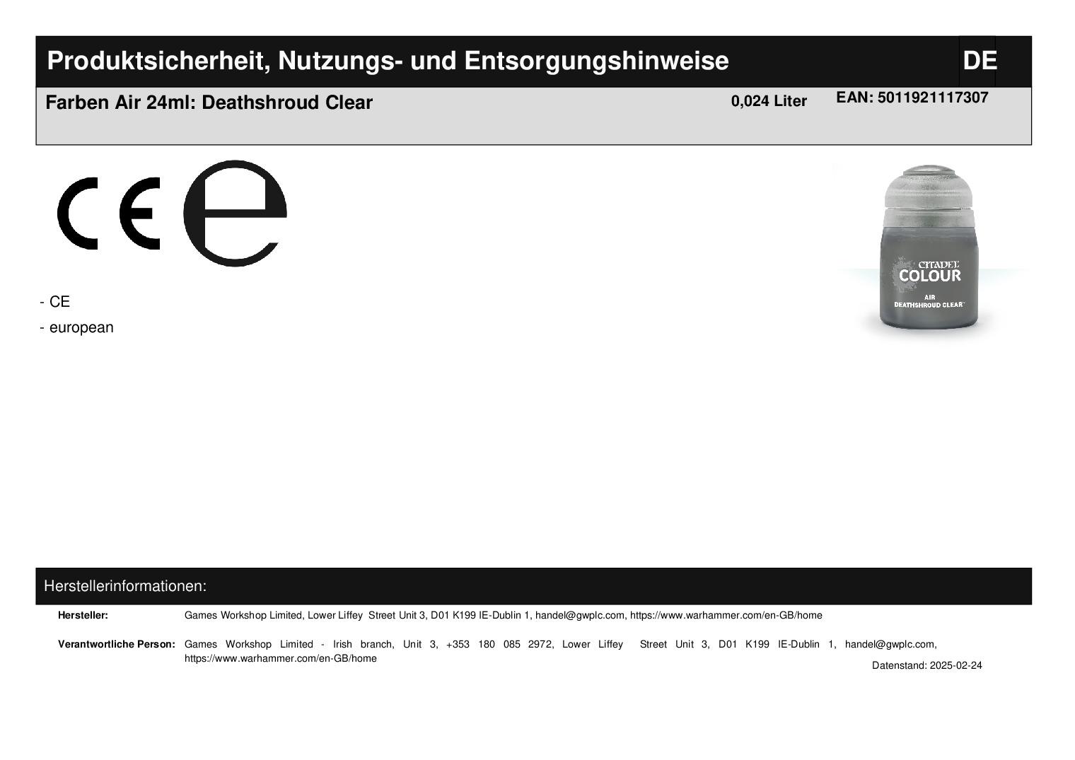 Produktinformationen "Farben Air 24ml: Deathshroud Clear"