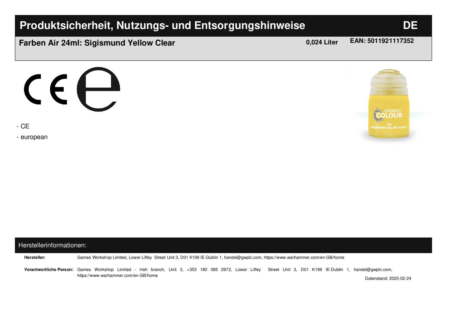 Produktinformationen "Farben Air 24ml: Sigismund Yellow Clear"