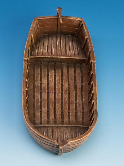 Die Barkaza wird unbemalt und in Einzelteilen geliefert und muss noch zusammengebaut werden.