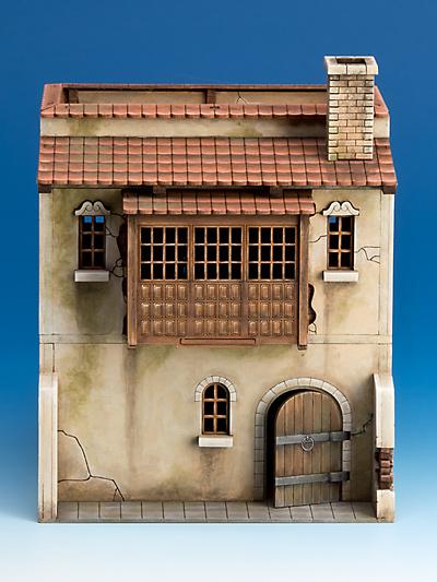 Drei Stockwerke, vollständig gestaltete Innenwände und Böden, viele optionale Teile wie Treppen, Erker und Schornsteine. Beweglich einbaubare Türen.Die Cabañas sind miteinander kombinierbar.Mehrteiliger, unbemalter Lasercut-MDF-Bausatz im 28mm Maßstab, der noch zusammengebaut werden muss.