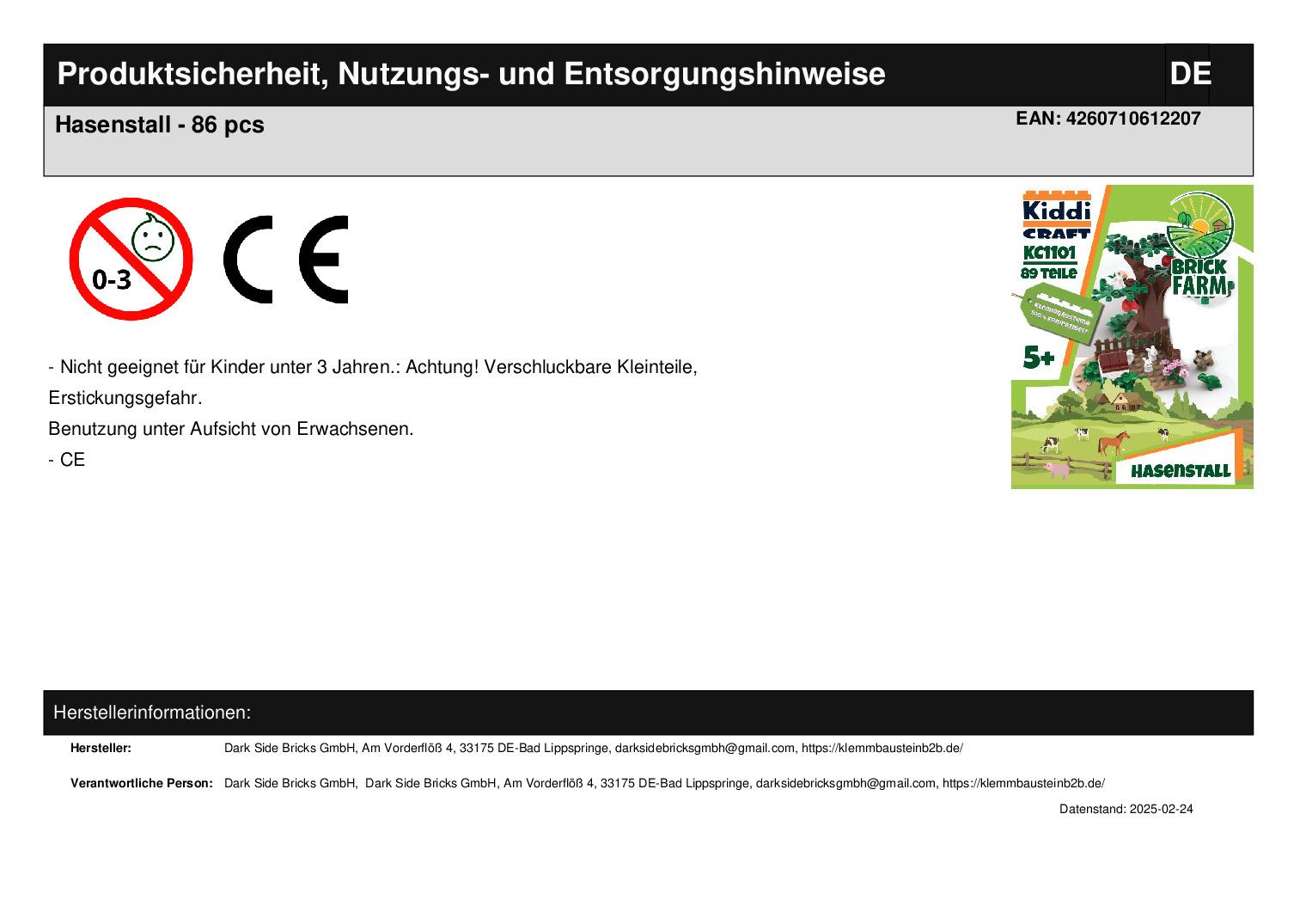 Dark Side Bricks GmbH Am Vorderflöß 4 33175 Bad Lippspringe darksidebricksgmbh@gmail.com https://klemmbausteinb2b.de/ WEEE-Nummer: