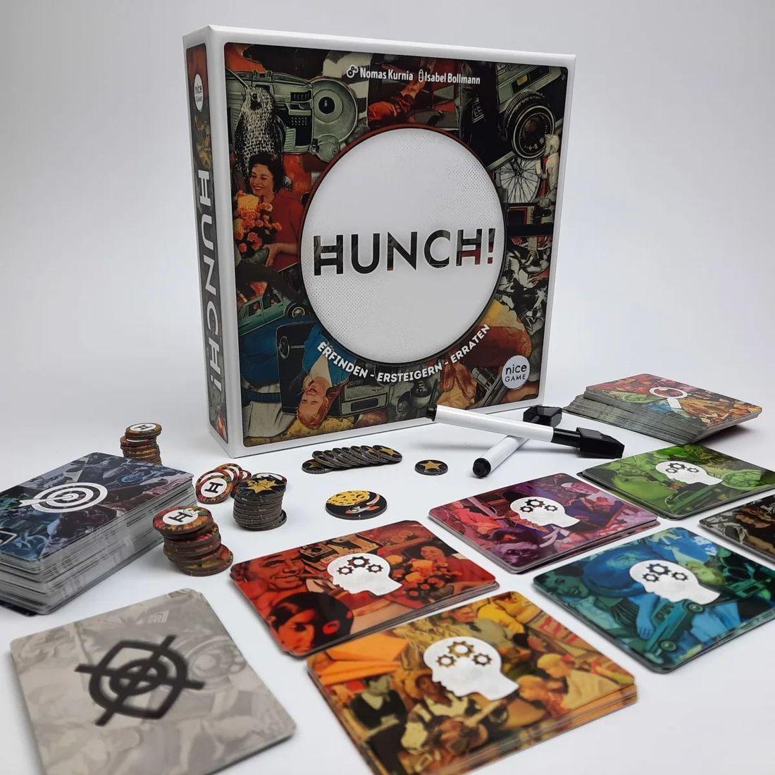 In Hunch dreht sich alles um Worte! Ihr versucht durch geschicktes Verwenden von Hinweisen die anderen dazu zu bringen, eure geheimen Wörter zu erraten. Aber Achtung: Diese Hinweise denkt ihr nicht euch selbst aus, ihr müsst sie von den Anderen ersteigern.