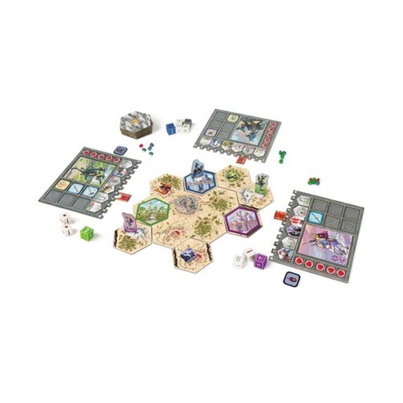 Karak 2 ist eine eigenständige Fortsetzung eines der Top 10 Kinderspiele auf BGG Karak. Der zweite Teil fügt eine komplexere Ebene hinzu und bleibt dennoch für Kinder zugänglich. Jeder Spieler wird zu einem Helden, der versucht, Monster und ihren Anführer, den Dunklen General, zu besiegen. Um dies zu erreichen, müssen sie Ressourcen sammeln, ihre Städte aufbauen und entwickeln und neue Einheiten (dargestellt durch Würfel) ausbilden, um ihre Armee zu verstärken. Im Laufe des Spiels werden die Spieler Monster besiegen, die mächtige Seelensteine bei sich tragen - und der Spieler mit den meisten Seelensteinen am Ende des Spiels ist der Gewinner.