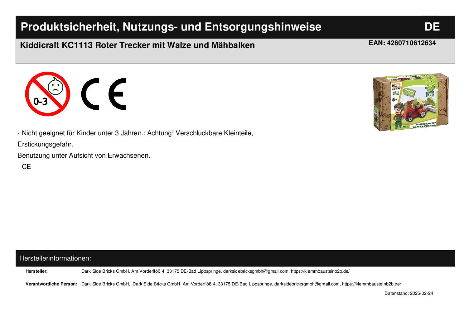 Dark Side Bricks GmbH Am Vorderflöß 4 33175 Bad Lippspringe darksidebricksgmbh@gmail.com https://klemmbausteinb2b.de/ WEEE-Nummer: