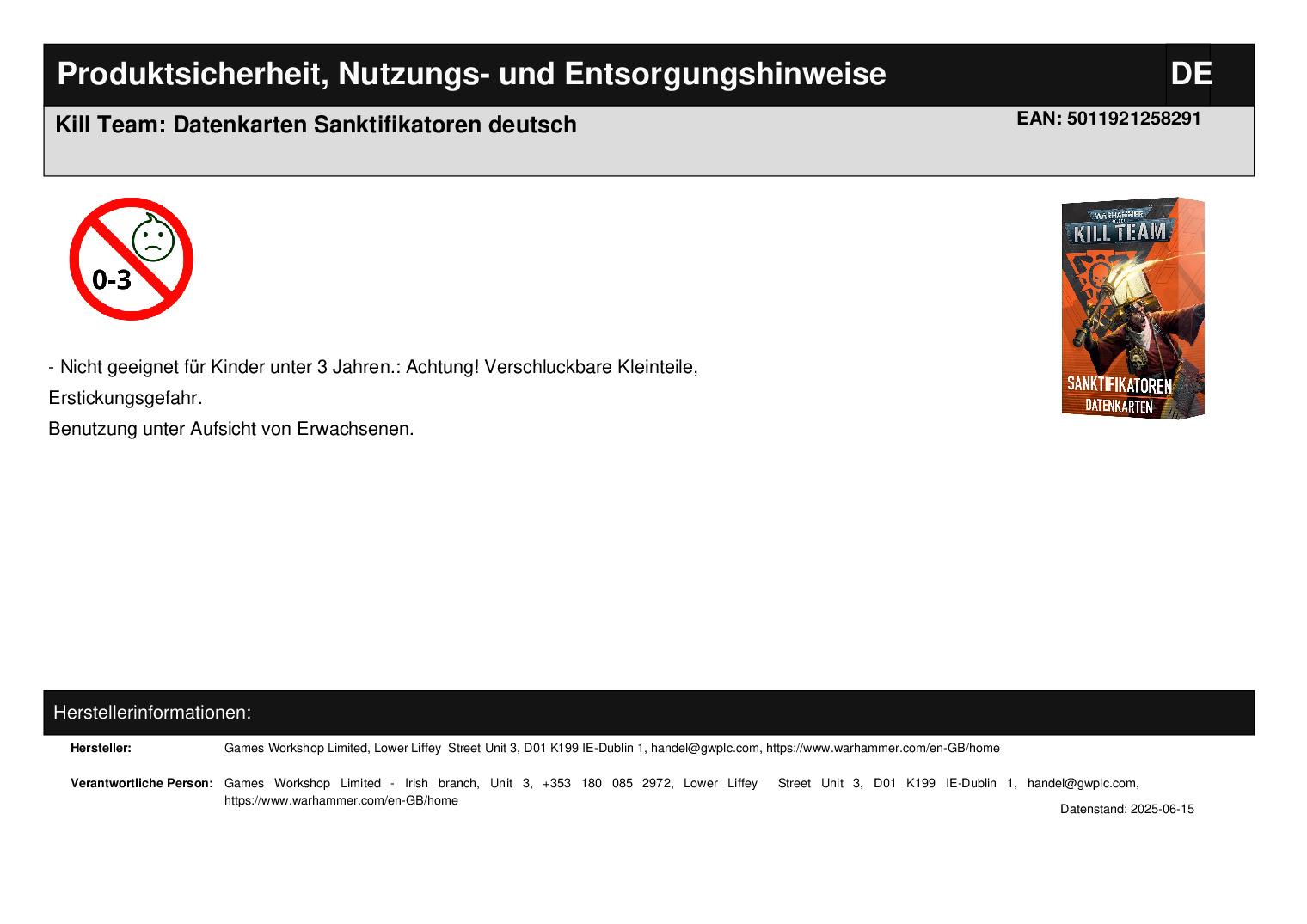 Games Workshop Limited Lower Liffey Street Unit 3 D01 K199 Dublin 1 handel@gwplc.com https://www.warhammer.com/en-GB/home WEEE-Nummer: