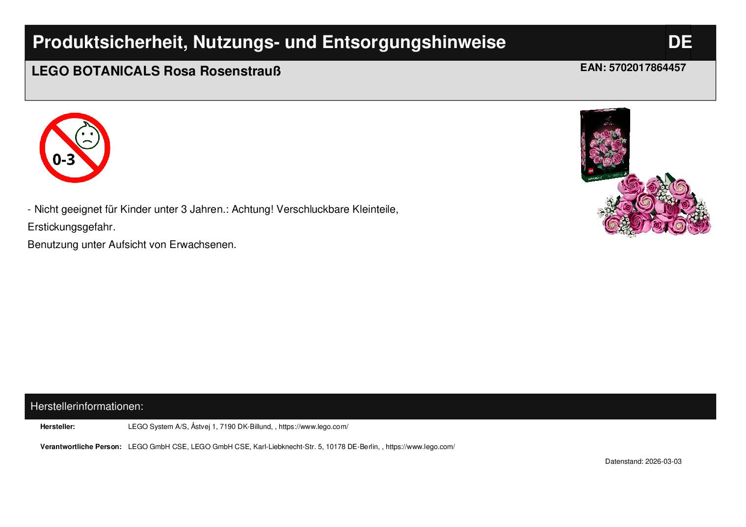 Produktinformationen "LEGO BOTANICALS Rosa Rosenstrauß"