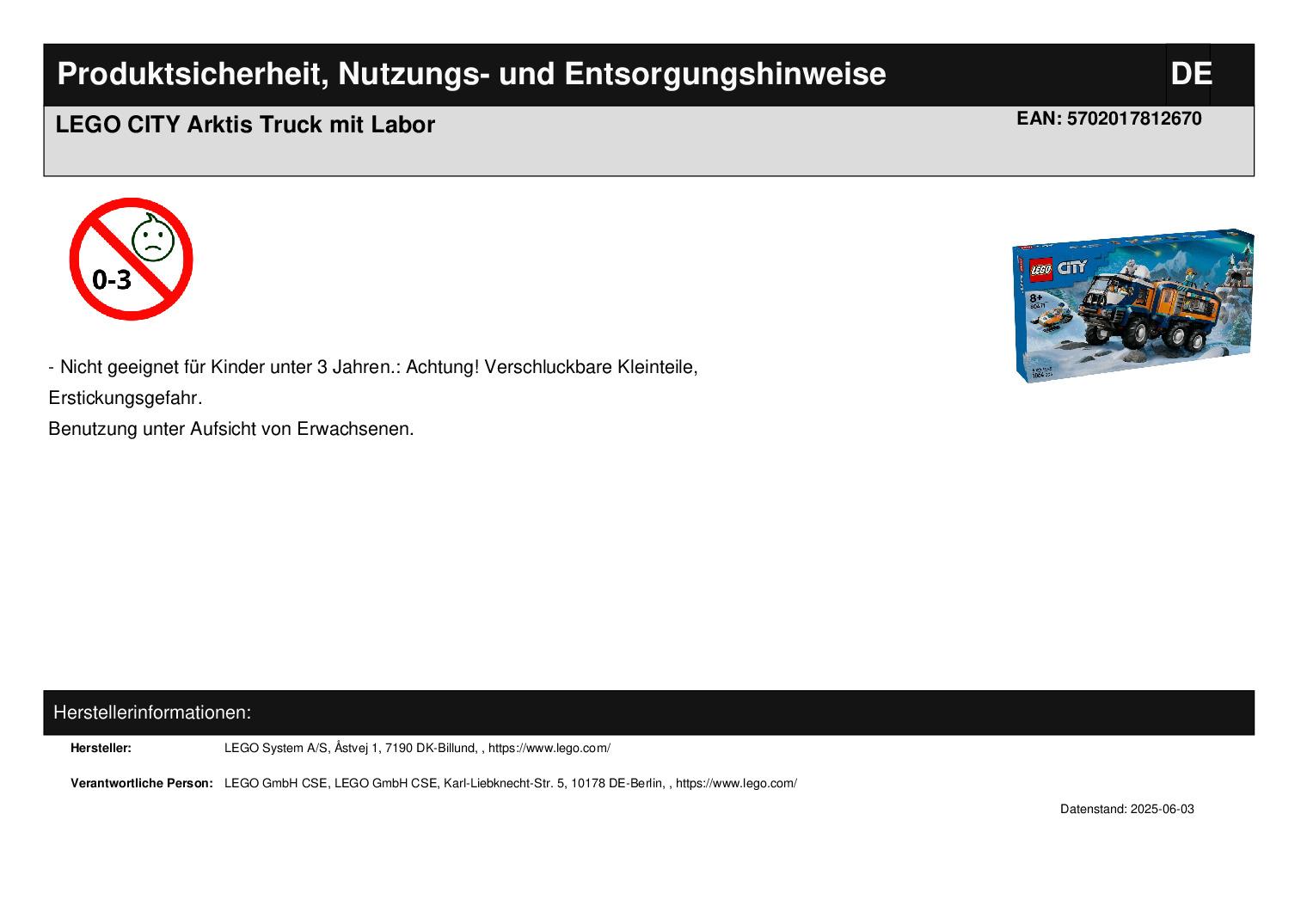 Produktinformationen "LEGO CITY Arktis Truck mit Labor"
