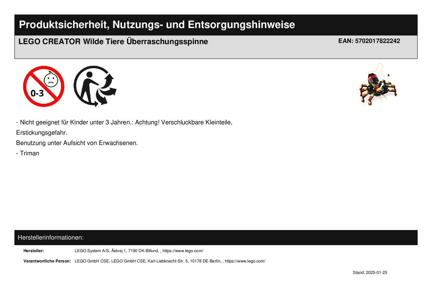 Produktinformationen "LEGO CREATOR Wilde Tiere Überraschungsspinne"