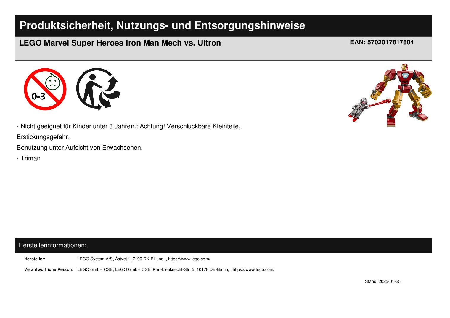 Produktinformationen "LEGO Marvel Super Heroes Iron Man Mech vs. Ultron"