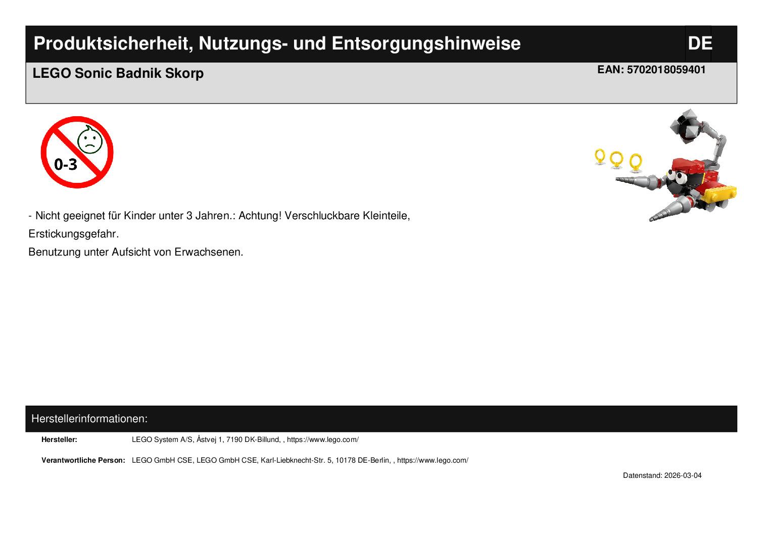 Produktinformationen "LEGO Sonic Badnik Skorp"