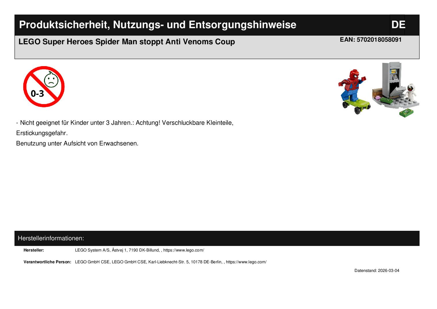 Produktinformationen "LEGO Super Heroes Spider Man stoppt Anti Venoms Coup"