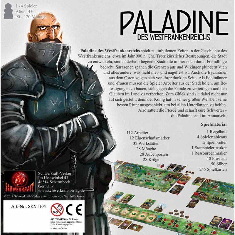 In Paladine des Westfrankenreichs setzen die Spieler ihre Arbeiter ein, um Außenposten als Garnison zu errichten, Befestigungen zu bauen, Mönchen zu entsenden und die Fremden zu konfrontieren. In jeder Runde beanspruchen die Spieler die Hilfe eines bestimmten Paladins und heuern Arbeiter an, um bestimmte Aufgaben zu erledigen. Im Laufe des Spiels gewinnen die Spieler nach und nach an Glauben, Stärke und Einfluss. Diese Eigenschaften sind nicht nur für die Schlusswertung wichtig, sondern auch von Bedeutung für die Aktionen, die ausgeführt werden können.