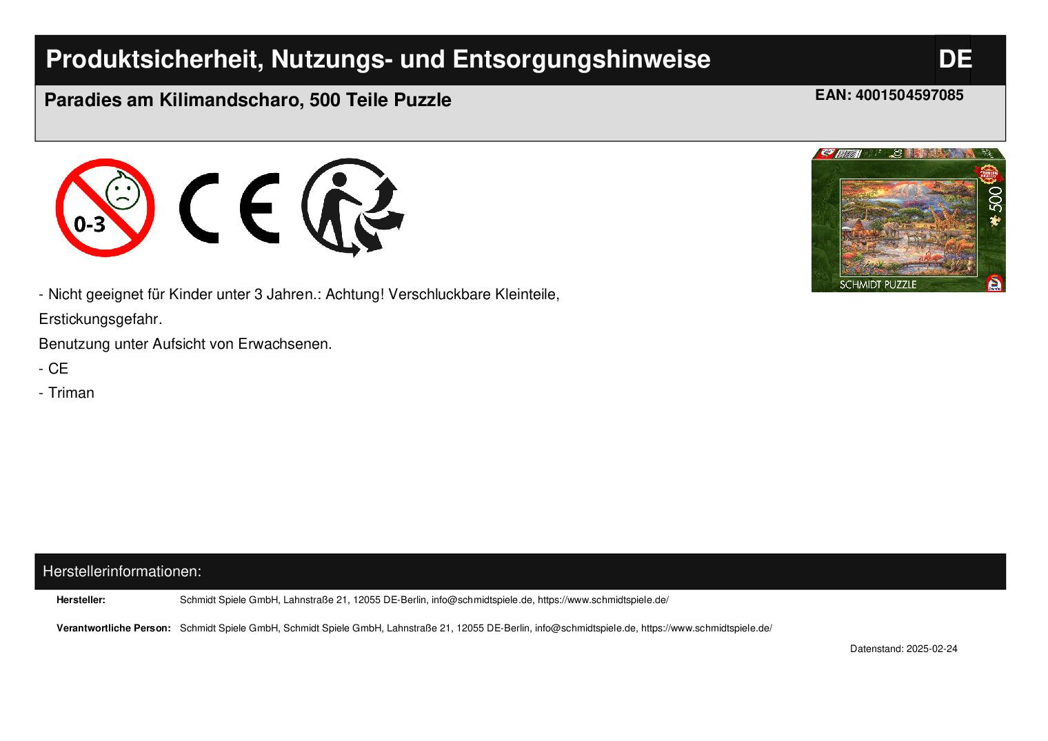 Produktinformationen "Paradies am Kilimandscharo, 500 Teile Puzzle"