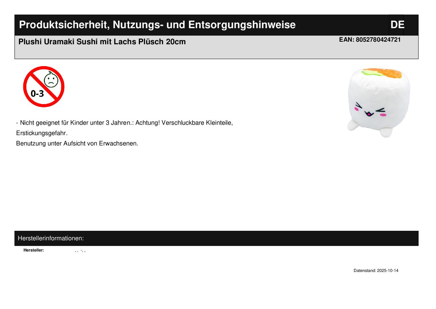 Produktinformationen "Plushi Uramaki Sushi mit Lachs Plüsch 20cm"