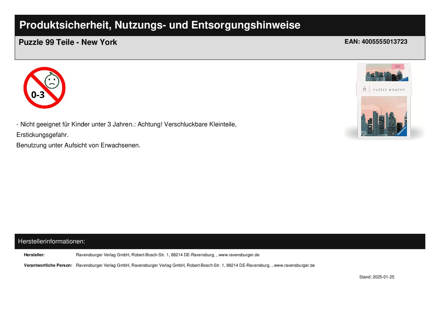 Der Ravensburger Puzzle Moment mit 99 Teilen für Erwachsene bietet Entspannung in Premium Qualität. Ob Puzzle Neuling, erfahrener Puzzlefan oder einfach zur Abwechslung für Zwischendurch. Puzzeln ist das neue Yoga. Die Auszeit vom Alltag. Der kostbare Moment für mich. Gönn dir deinen Puzzle Moment mit dem 99 Teile Puzzle Moment von Ravensburger. Die vielen trendigen und frischen Motive innerhalb der Serie machen definitiv Lust auf mehr.Vollgeplante Wochenenden? Freizeitstress im Alltag? Von Termin zu Termin? Spätestens dann ist es Zeit für eine kleine Pause – abschalten und den Moment genießen! Der Ravensburger Puzzle Moment mit 99 Teilen für Erwachsene passt hier perfekt: Entspannung für Zwischendurch in Premium Qualität. Ob Puzzle Neuling, erfahrener Puzzleprofi oder einfach zur Abwechslung vom stressigen Alltag. Ein entspanntes Puzzleerlebnis wartet um neue Kraft zu schöpfen und Energie zu tanken. Puzzeln ist das neue Yoga. Die Auszeit vom Alltag. Der Moment für mich. Gönn dir deinen Puzzle Moment mit dem 99 Teile Puzzle Moment von Ravensburger. Die trendigen Motive innerhalb der Serie machen definitiv Lust auf mehr. Erhältlich mit 99 Teilen für ganz frische Puzzler, mit 200 Teilen für Puzzler, die eine entspannte Herausforderung suchen oder als 300 Teile Variante für die, die ein bisschen mehr Erholung brauchen.