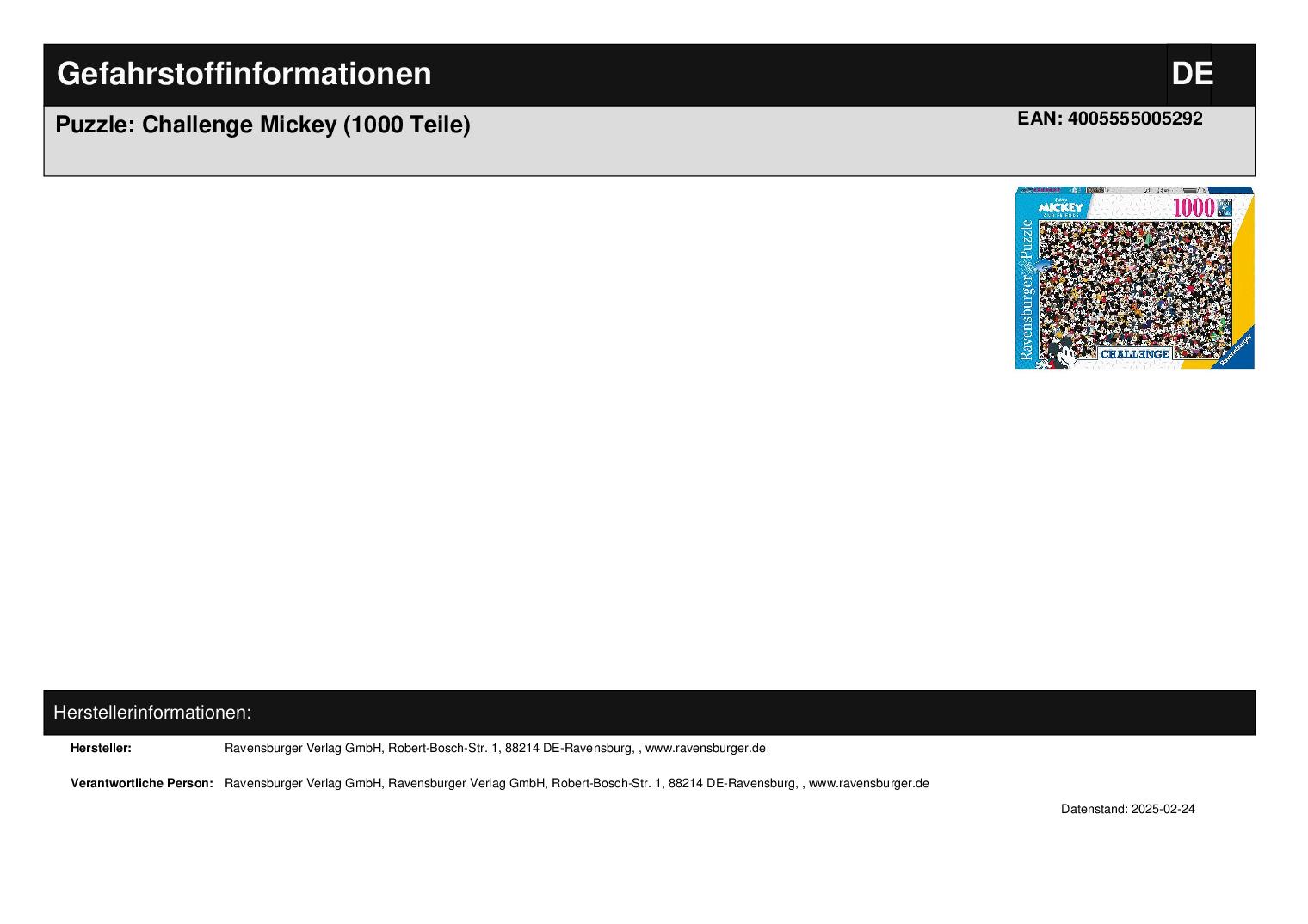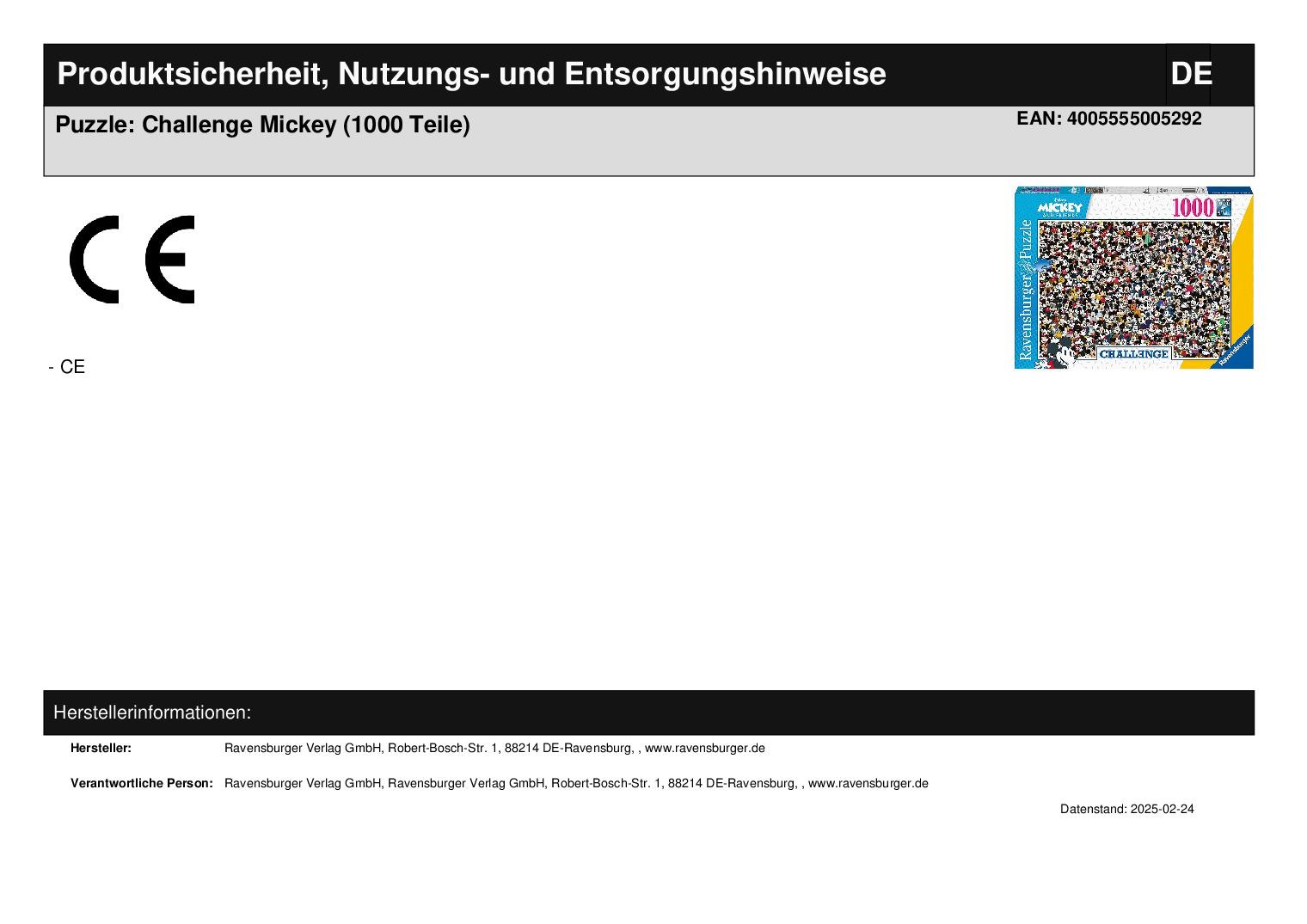 Produktinformationen "Puzzle: Challenge Mickey (1000 Teile)"