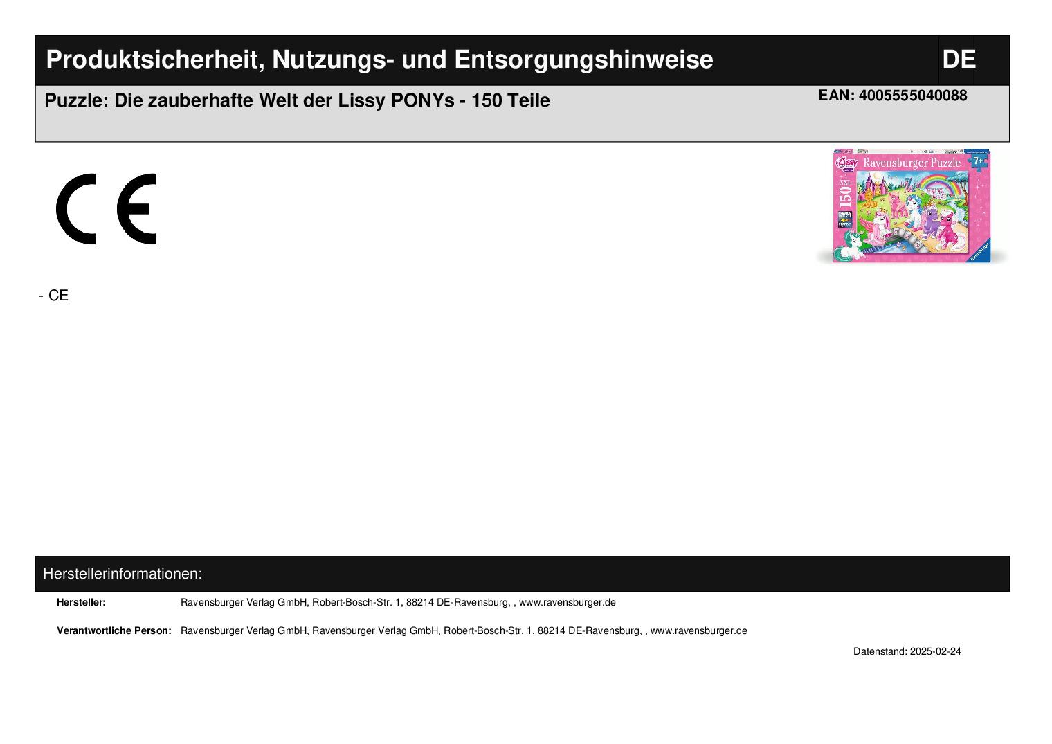 Ravensburger Verlag GmbH Robert-Bosch-Str. 1 88214 Ravensburg www.ravensburger.de WEEE-Nummer: