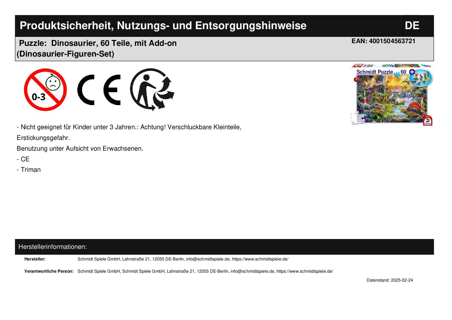 Produktinformationen "Puzzle: Dinosaurier, 60 Teile, mit Add-on (Dinosaurier-Figuren-Set)"
