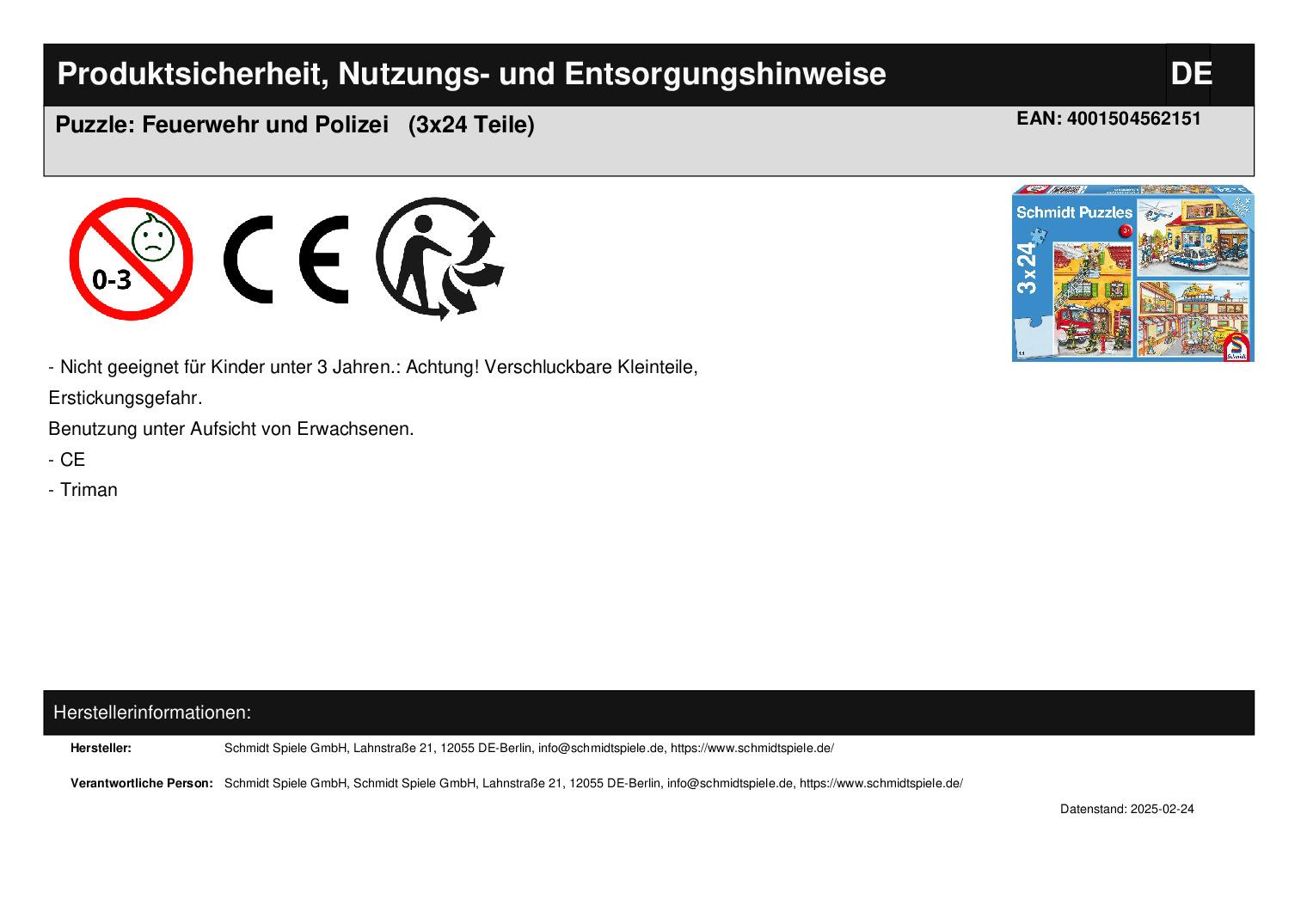 Produktinformationen "Puzzle: Feuerwehr und Polizei (3x24 Teile)"