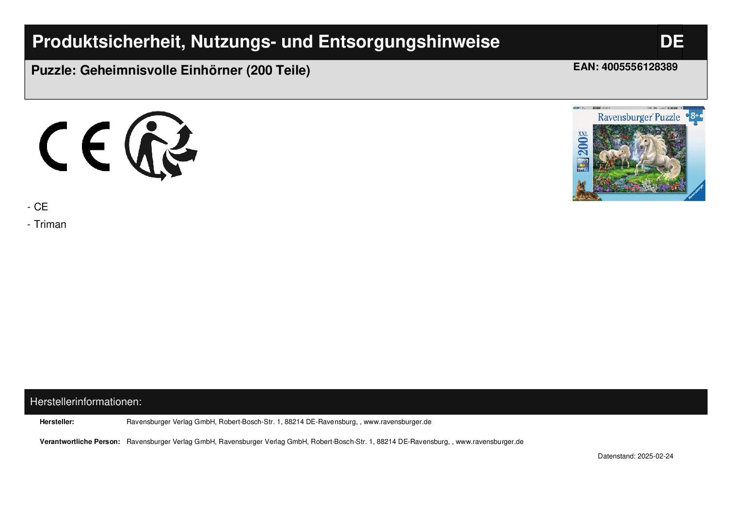 Produktinformationen "Puzzle: Geheimnisvolle Einhörner (200 Teile)"