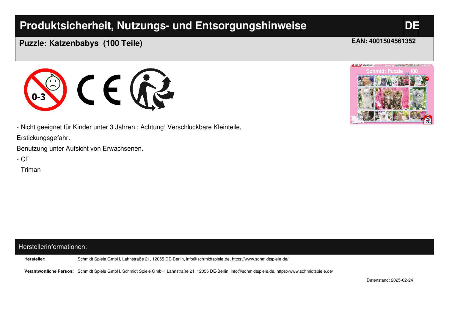 Produktinformationen "Puzzle: Katzenbabys (100 Teile)"