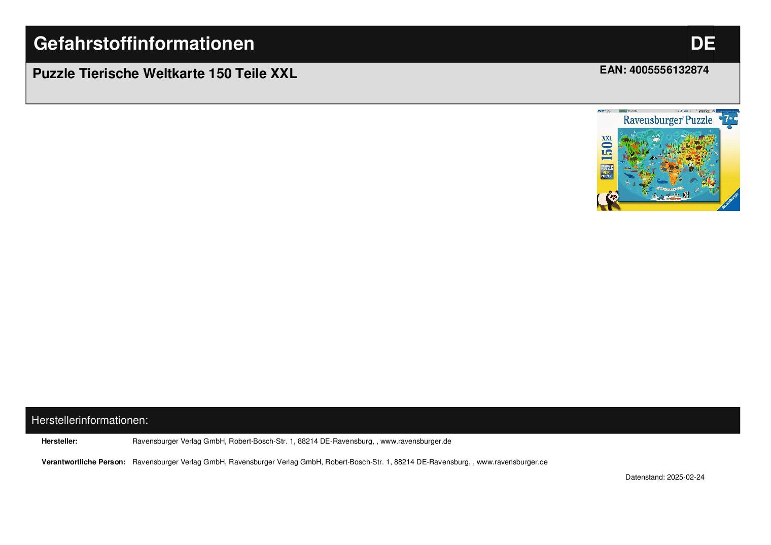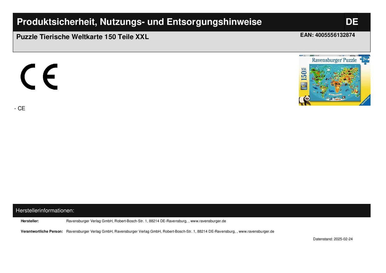 Produktinformationen "Puzzle Tierische Weltkarte 150 Teile XXL"