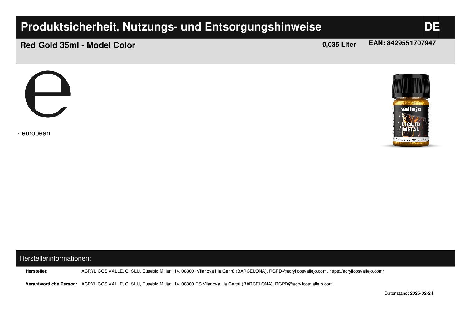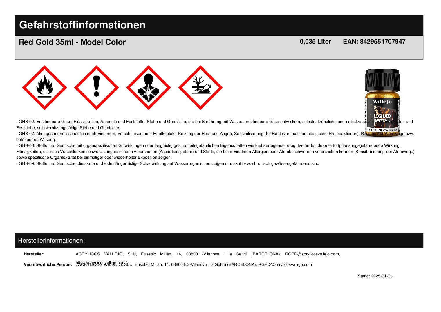 Hersteller "ACRYLICOS VALLEJO, SLU"