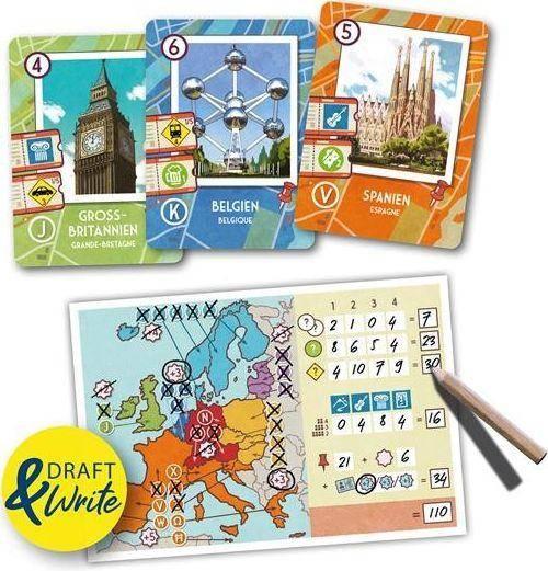 Bei diesem schön illustrierten Kartenspiel kann man Europa in 30 Minuten bereisen. Dabei erhält man Punkte für besuchte Länder, Regionen, Kulturen etc. Die Europa-Ausgabe ist der erste Teil der neuen ROAD TRIP Kartenspiel-Reihe, die zwei beliebte Spielmechaniken miteinander verbindet (Draften/Roll&Write). Steige ein und stell dir den perfekten ROAD TRIP zusammen.