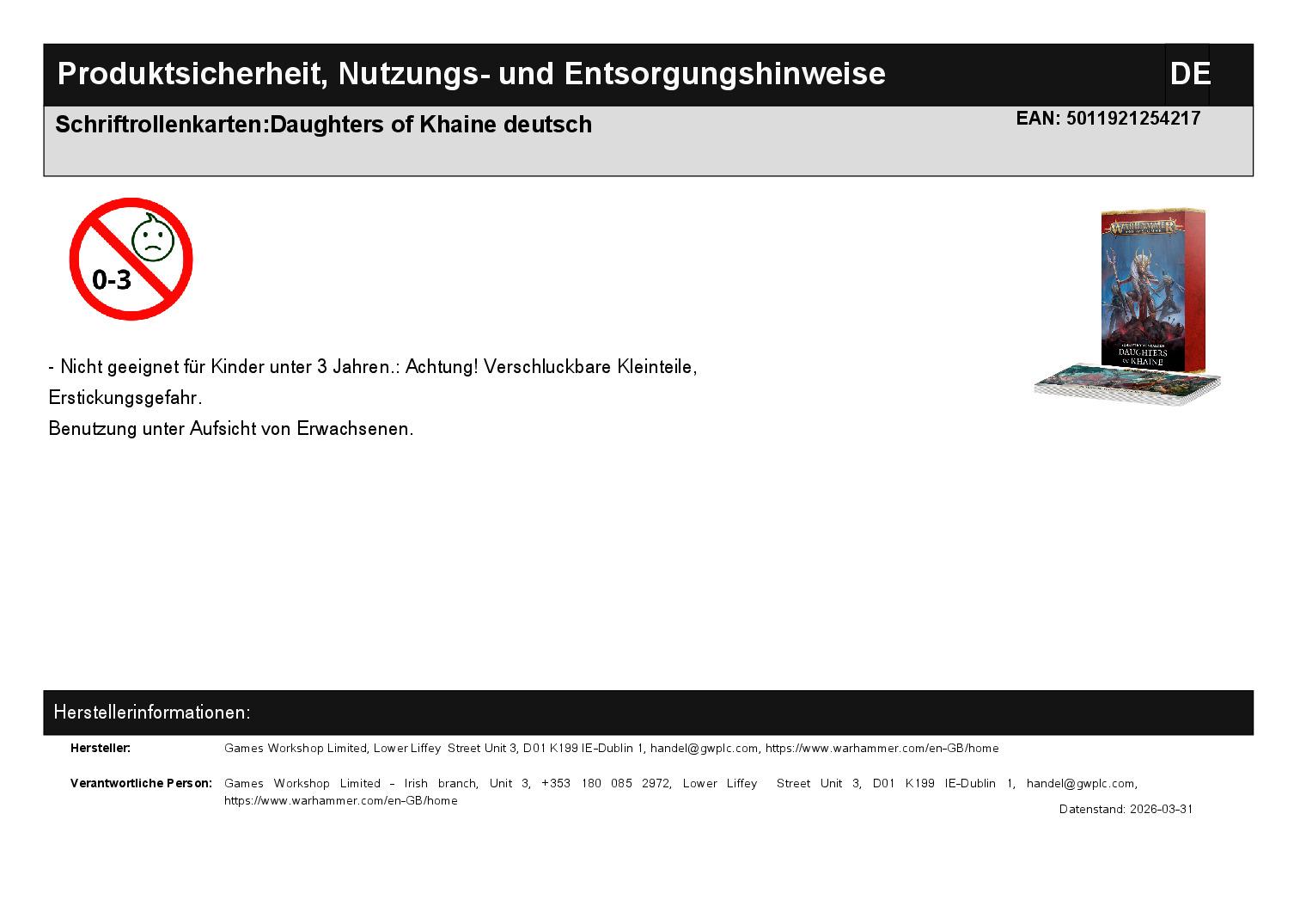 Du benötigst eine Ausgabe des Kriegsbuchs der Ordnung: Daughters of Khaine, das separat erhältlich ist, um diese Karten vollständig einzusetzen.
