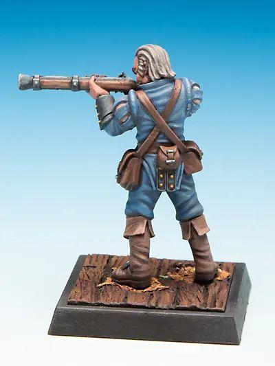Serrado hat schon eine lange Karriere bei der Armada hinter sich. Sogar bei den Arquebusieren hat er bereits gedient. Doch mit den langen Arquebusen ist er nie warm geworden. Er bevorzugt eine Donnerbüchse. Sie hat zwar keine hohe Reichweite, aber sie versetzt den Gegner durch ihren lauten Knall in Angst und Schrecken.