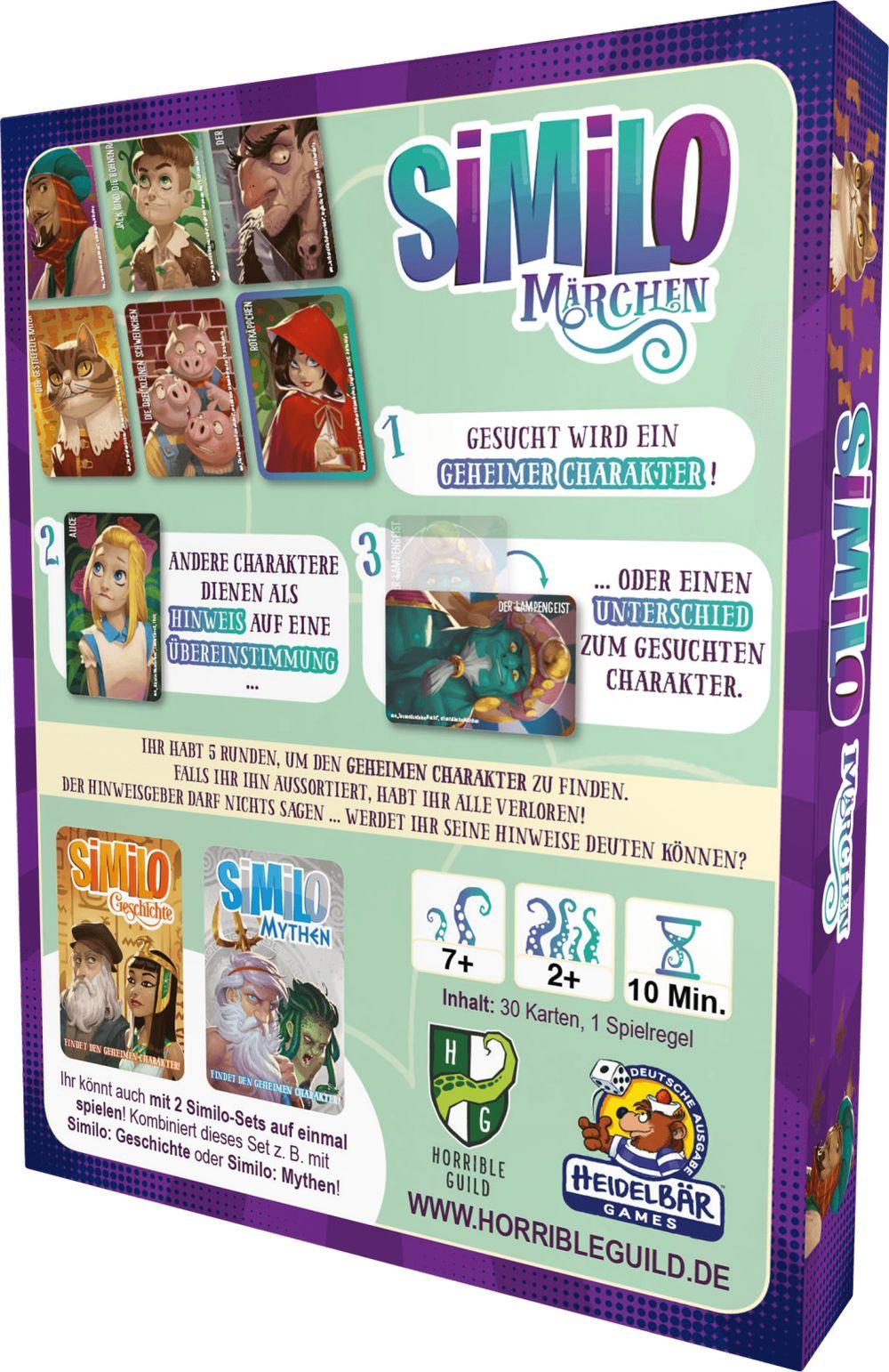 Bei Similo: Märchen geht es darum, als Team eine ganz bestimmte Märchenfigur zu finden. Nur ein Spieler weiß, welcher der ausliegenden Charaktere der gesuchte ist. Er legt immer eine Karte als Hinweis auf Gemeinsamkeiten oder Unterschiede. Die Ratenden schließen nach und nach einen Charaktere aus, bis am Ende ? hoffentlich ? nur noch der geheime Charakter übrig ist. Grinsekatze oder Böse Königin, bei Similo: Märchen findet ihr es heraus!