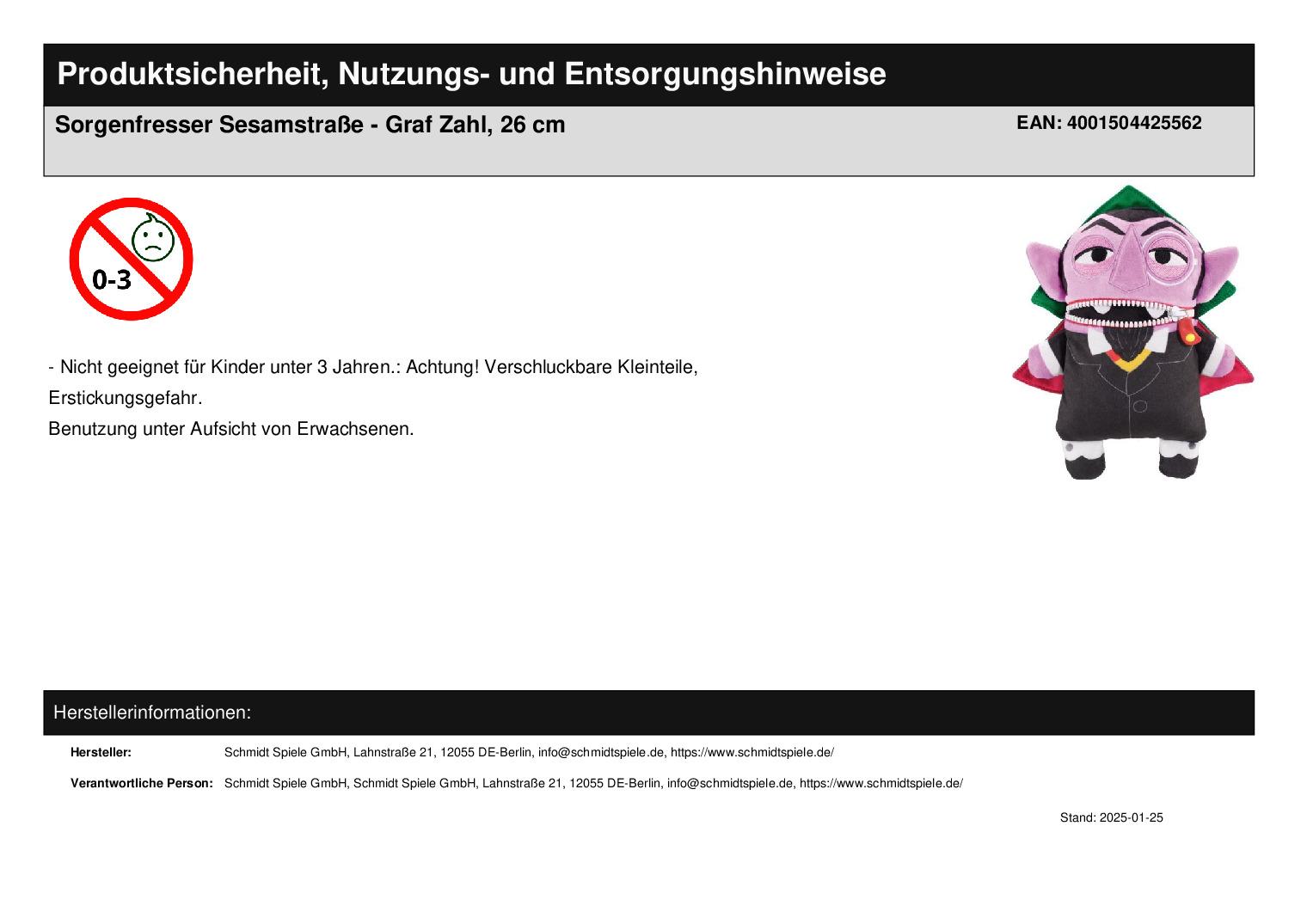 Produktinformationen "Sorgenfresser Sesamstraße - Graf Zahl, 26 cm"