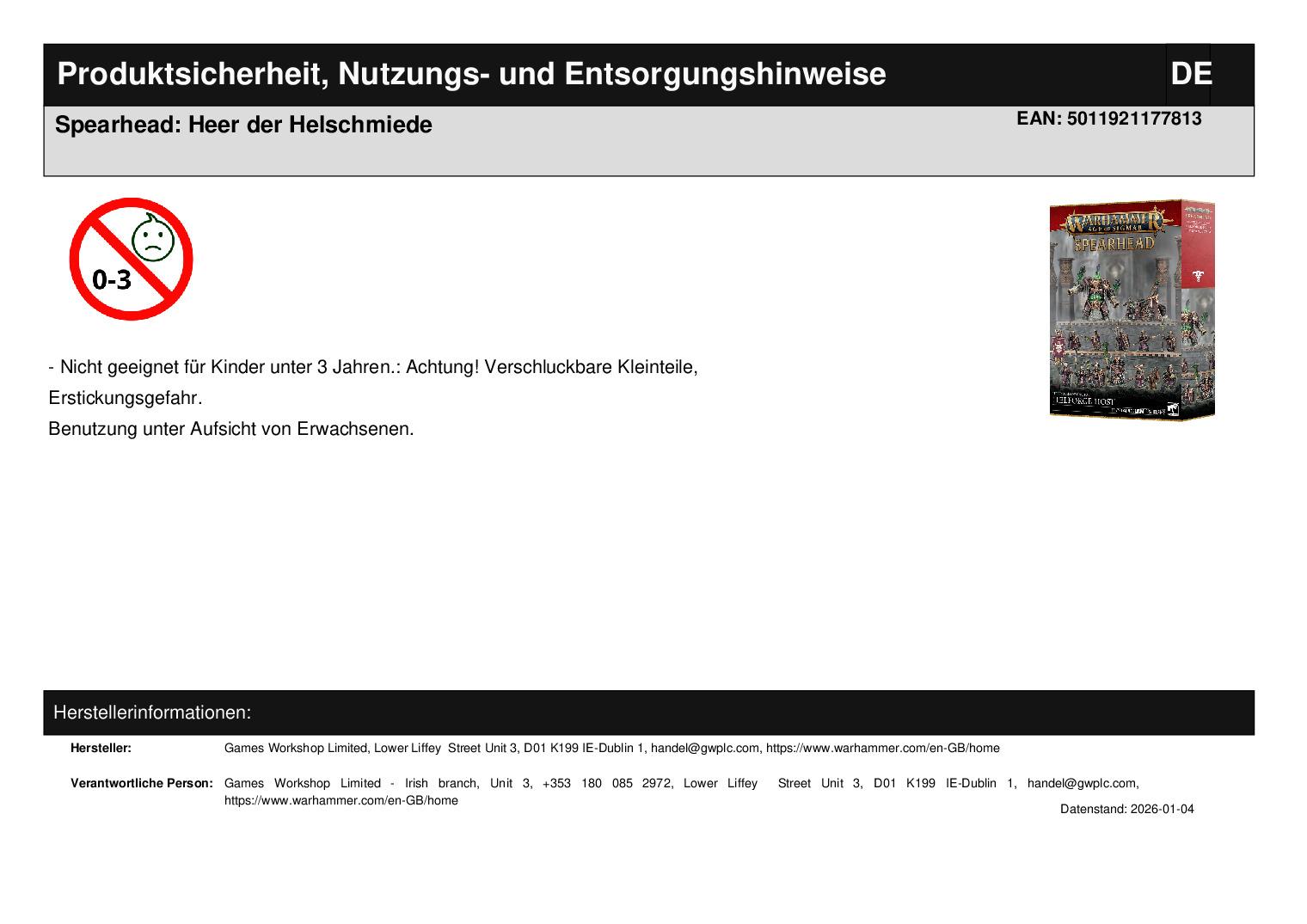 Games Workshop Limited Lower Liffey Street Unit 3 D01 K199 Dublin 1 handel@gwplc.com https://www.warhammer.com/en-GB/home WEEE-Nummer: