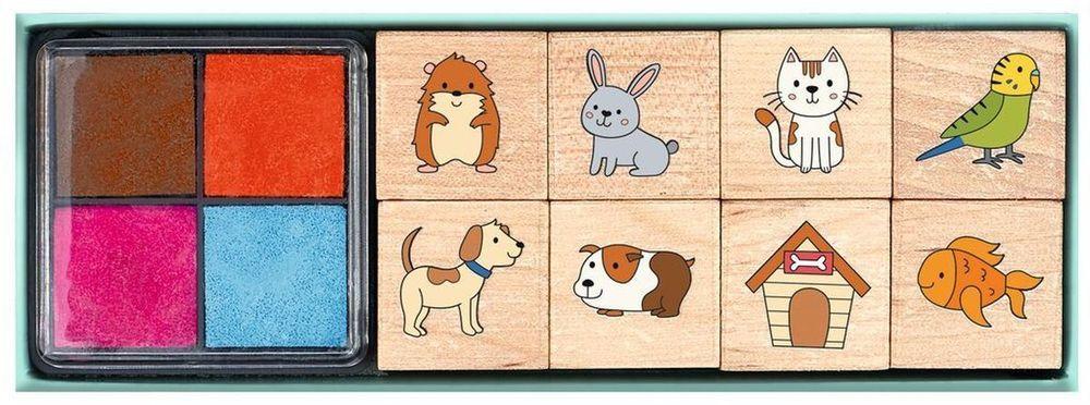 Viele Kinder wünschen sich sehnlichst ein Haustier. Wenn die Eltern nicht zu überzeugen sind, gibt es immerhin 8 verschiedene Haustiere in diesem Stempelset. Hund, Katze, Hamster und Co. warten nur darauf, an kreativen Nachmittagen zum Einsatz zu kommen. Jedes Motiv kann dann individuell ausgemalt werden, der Kreativität sind keine Grenzen gesetzt. Unser Tipp: Mit einfachem Packpapier und dem Stempelset lässt sich ganz leicht eigenes Geschenkpapier kreieren. So werden Geschenke zu einem echten Hingucker!