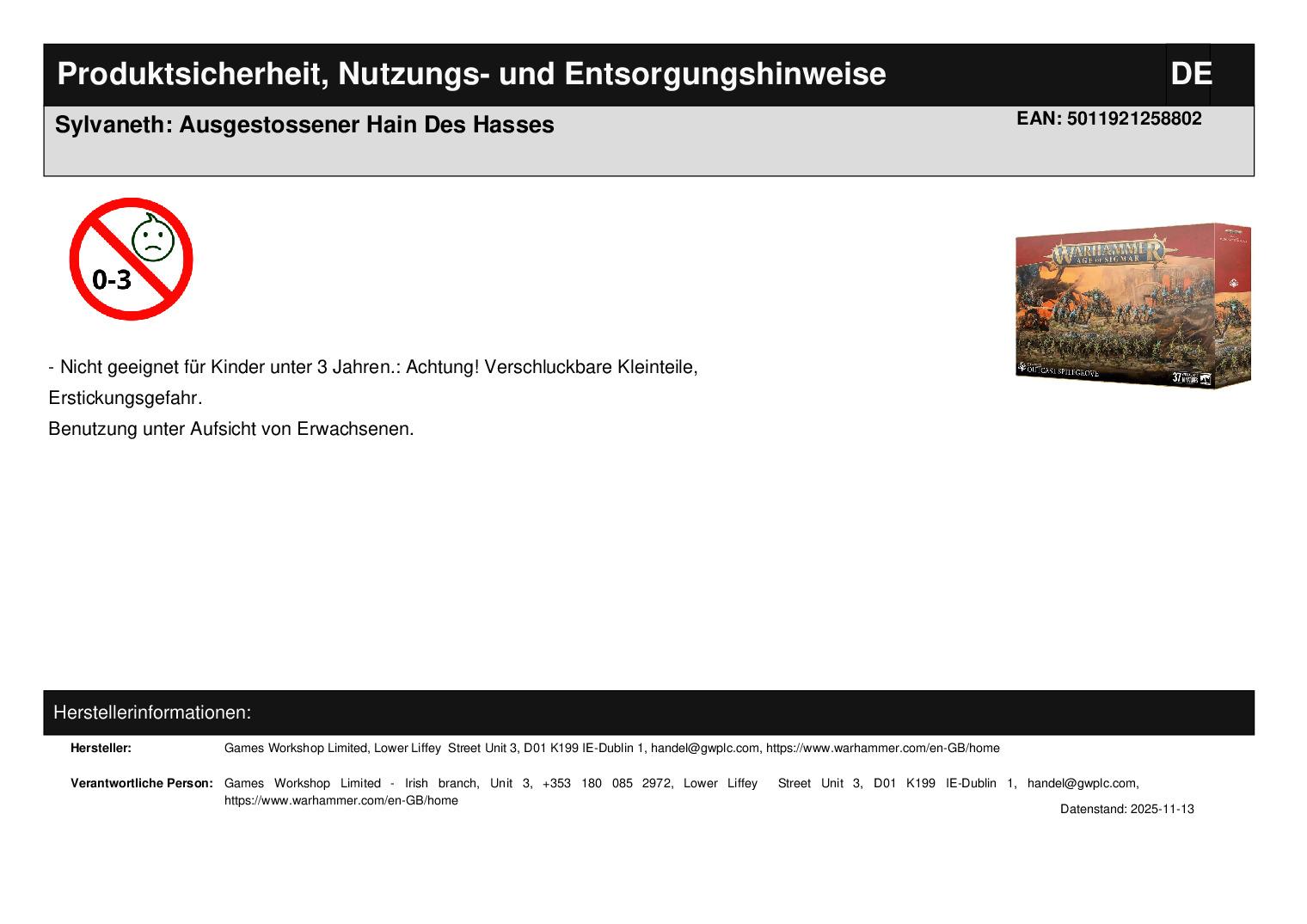 Games Workshop Limited Lower Liffey Street Unit 3 D01 K199 Dublin 1 handel@gwplc.com https://www.warhammer.com/en-GB/home WEEE-Nummer: