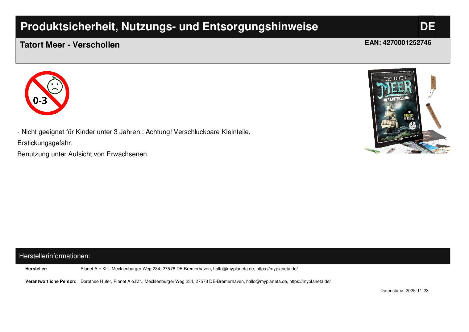 Planet A e.Kfr. Mecklenburger Weg 234 27578 Bremerhaven hallo@myplaneta.de https://myplaneta.de/ WEEE-Nummer: