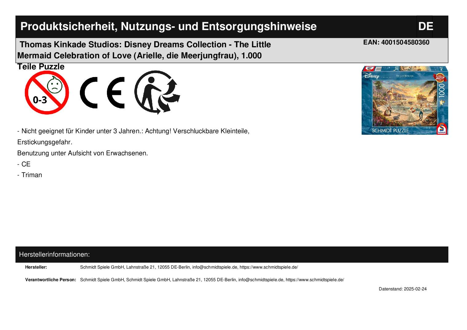Produktinformationen "Thomas Kinkade Studios: Disney Dreams Collection - The Little Mermaid Celebration of Love (Arielle, die Meerjungfrau), 1.000 Teile Puzzle"