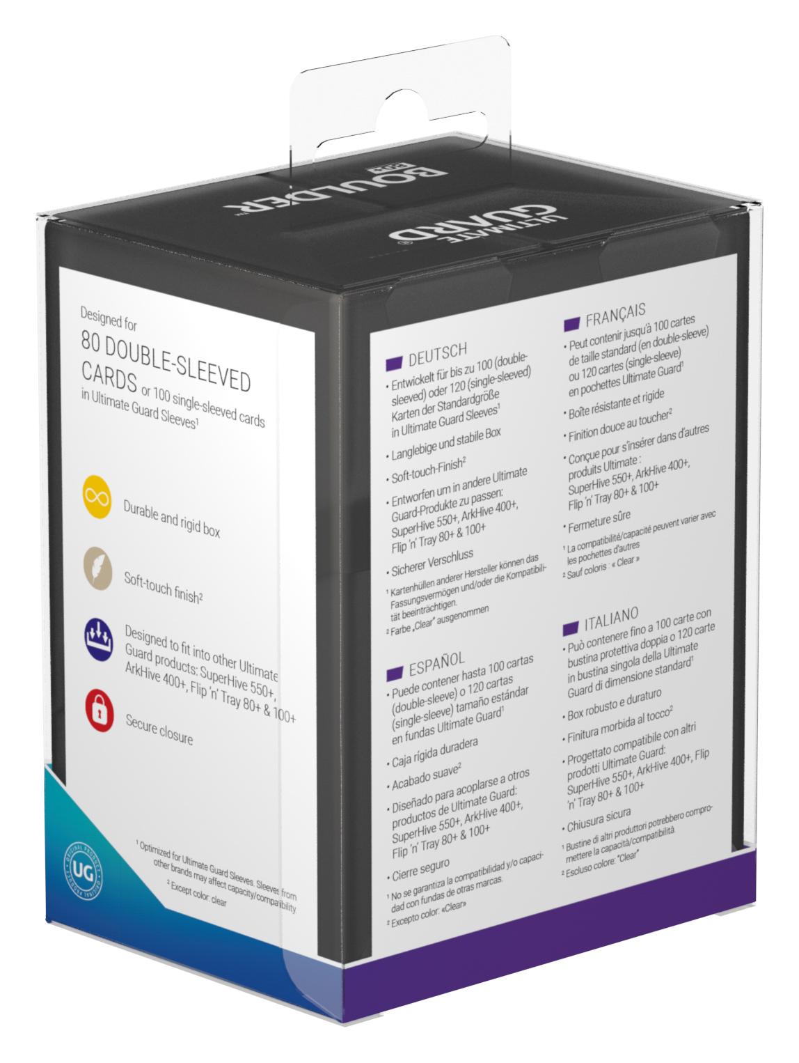 Die handliche, feste Kartenbox mit Soft-Touch-Oberfläche lässt sich besonders leicht öffnen und bietet Platz für bis zu 80 Karten der Standardgröße (double-sleeved). Dank ihrem modularen Design passt sie perfekt in Flip'n'Tray™ und Arkhive™ Cases.