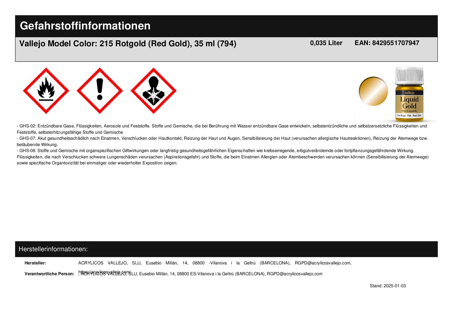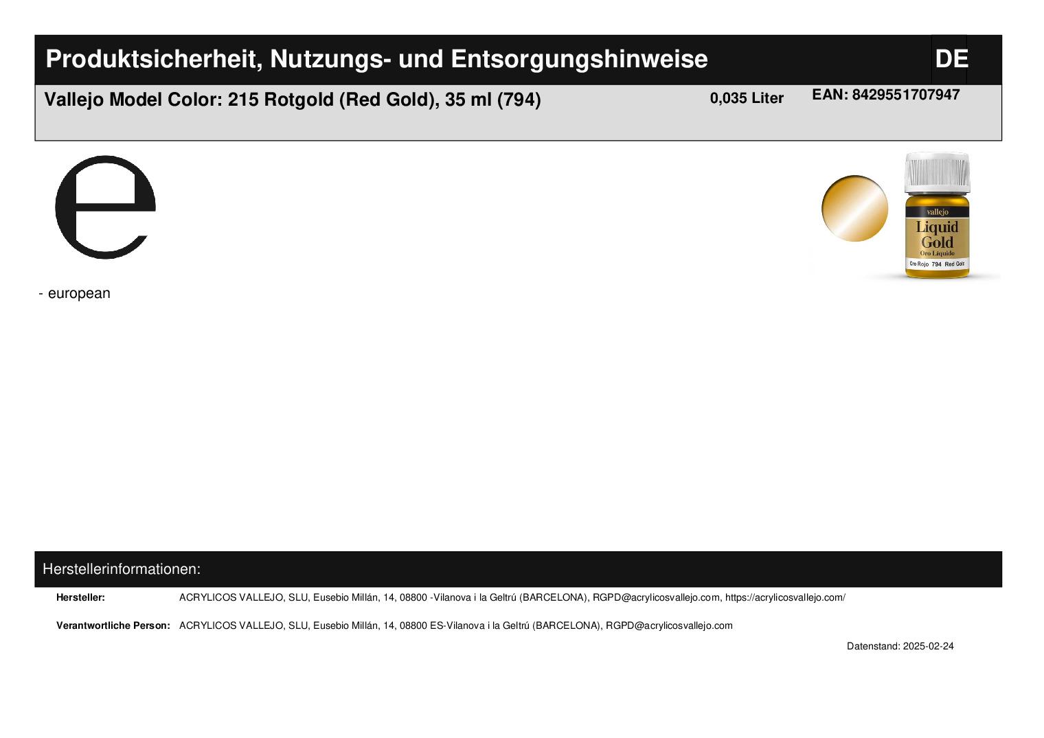 Hersteller "ACRYLICOS VALLEJO, SLU"