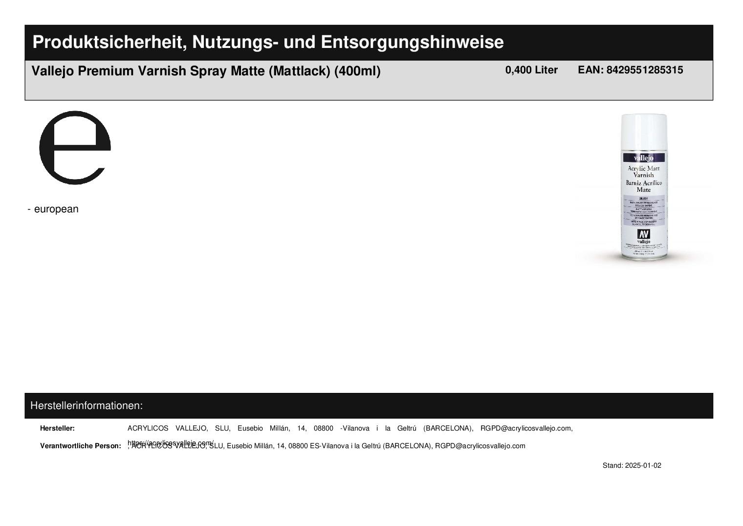 Hersteller "ACRYLICOS VALLEJO, SLU"